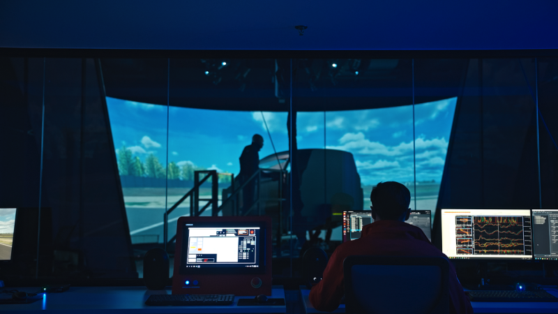 Der Simulator verfügt über eine grosse mobile Plattform mit einem Bewegungsbereich von fünf Metern und einem Cockpit aus Kohlefaser, wodurch der Fahrer in eine hyperrealistische Umgebung eintaucht, die das Fahren in der realen Welt nachahmt. Dieser Bewegungsbereich ermöglicht die Reproduktion von Kräften, die denen physikalischer Tests entsprechen, und erlaubt so eine hochpräzise Analyse.