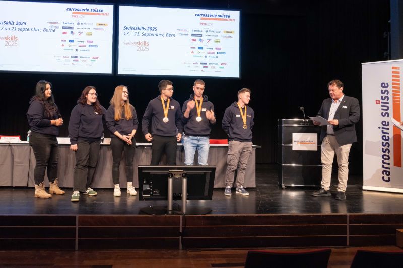 Als weiteren Programmpunkt der Versammlung liess Carrosserie Suisse das Scheinwerferlicht in Richtung Swiss Skills 2025 schwenken. Im vergangenen September repräsentierten 33 junge Talente in den drei Berufen Fahrzeugschlosser/-in EFZ, Carrosseriespengler/-in EFZ sowie Carrosserielackierer/-in EFZ die Branche auf eindrückliche Art und Weise – und liessen die Schweizer Jugend spannende Eindrücke der Carrosserie- und Fahrzeugbauberufe aus nächster Nähe gewinnen.