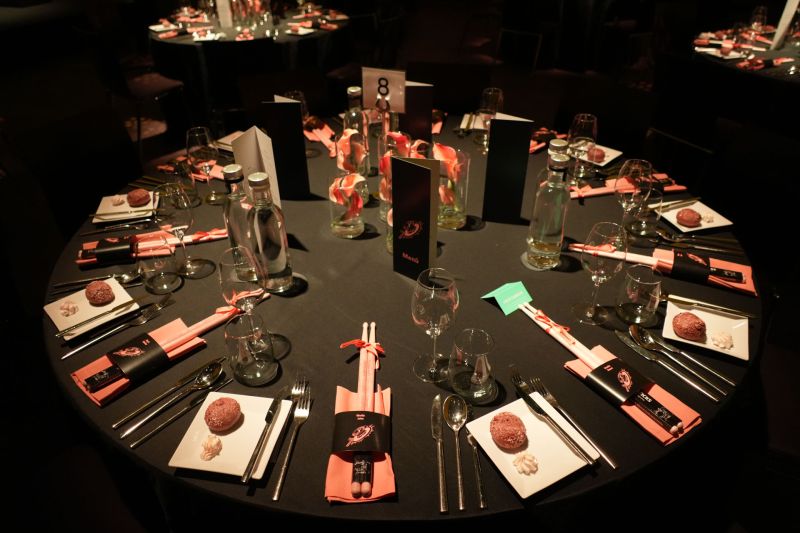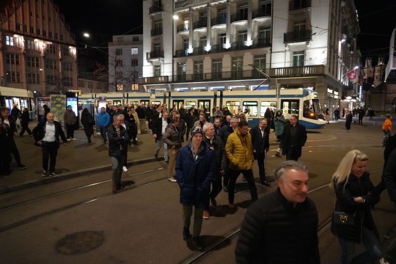 Der Abend begann in Zürich-West mit einer exklusiven Extra-Tramfahrt durch das Herz der Stadt. Die Route führte auf die Hardbrücke, am Hauptbahnhof vorbei auf die Bahnhofstrasse in Richtung See, via Bellevue und Limmatquai zur Endstation am Paradeplatz. Während der Fahrt kredenzte das Servicepersonal Apéro und Getränke – eine Herausforderung, die im ratternden Tram viel Professionalität gemeistert wurde.