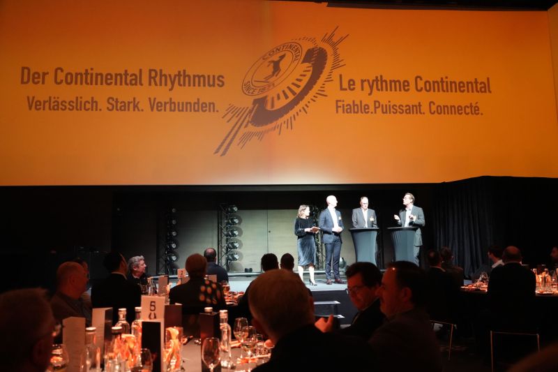 Veranstaltungsort war das Eventzentrum Aura im Gebäude der ehemaligen Börse am Bleicherweg, in dem noch bis 1992 mit Wertpapieren gehandelt wurde. An den angeschriebenen Plätzen warteten personalisierte Drumsticks als Sinnbild für das Motto des Abends: «Der Continental Rhythmus – Verlässlich. Stark. Verbunden.» Die rund 150 Gäste wurden von Daniel Freund, CEO Continental Suisse SA und Head of Subregion Alps CH/AT, und Moderatorin Mireille Jaton begrüsst. Unter den Anwesenden befanden sich Vertreter der ESA mit CEO Giorgio Feitknecht und Präsident Hubert Waeber, Derendinger mit CEO Karl Heusi, Hostettler Autotechnik mit Automotive-Leiter Marcel Stocker, Iwag Distribution mit Inhaber Christian Schaller sowie TCS Training und Events mit Direktor Rolf A. Egolf. Besonders willkommen geheissen wurde der neue oberste Continental-Chef Christian Kötz.